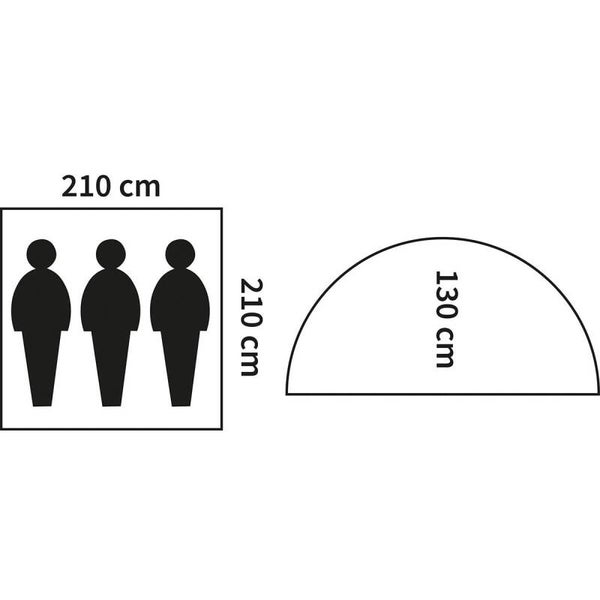 Ruimte voor 3 personen – Compact maar comfortabel met afmetingen van ca. 210 x 210 x 130 cm (L x B x H)